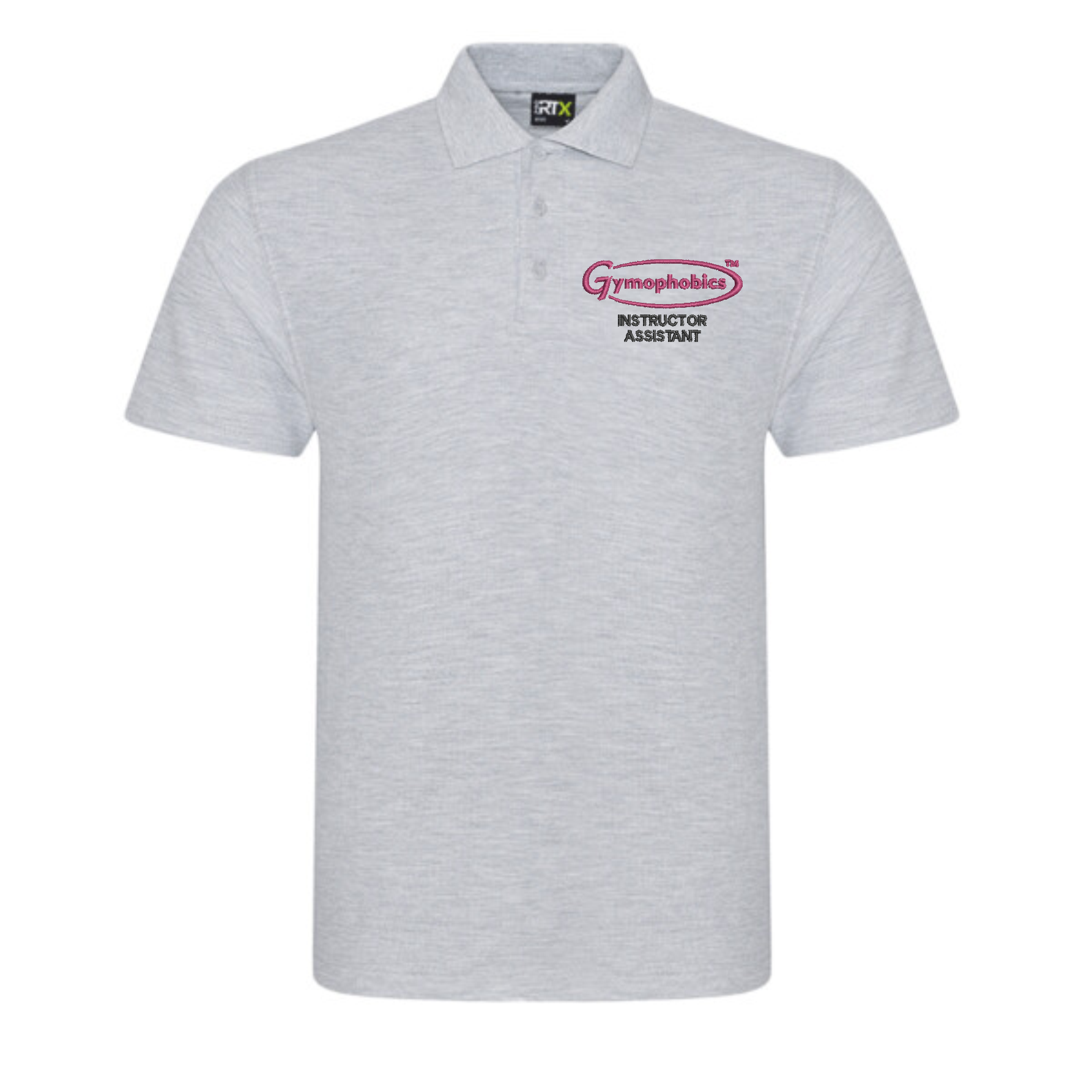 This Unisex' polo shirt offers a tailored fit with a ribbed collar and taped neck for added comfort. It features a two-button placket in matching colour, side vents for ease of movement, and durable twin needle stitching. Designed for washing at 60°C, it includes the option to add "Instructor Assistant" in black on the back and displays the new Gymophobics logo embroidered on the left chest.